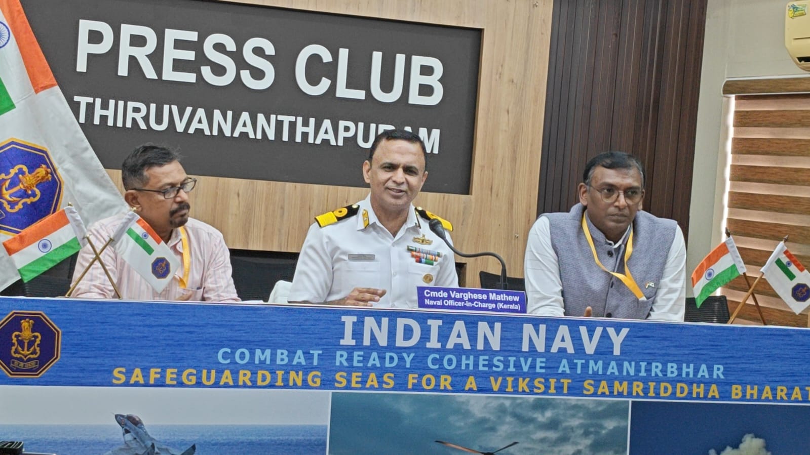 ഇന്ന് തിരുവനന്തപുരത്ത് നടന്ന പത്രസമ്മേളനത്തിൽ നാവികസേനാ ദിനത്തിലെ പ്രകടനങ്ങളെക്കുറിച്ച് നേവൽ ഓഫീസർ ഇൻ-ചാർജ് (കേരളം) കമോഡോർ വർഗീസ് മാത്യു വിശദീകരിച്ചു. കൊച്ചി പി.ആർ.ഒ കമാൻഡർ അതുൽ പിള്ള, തിരുവനന്തപുരം പി.ആർ.ഒ ബിജു കെ. മാത്യു എന്നിവരും ചടങ്ങിൽ പങ്കെടുത്തു.
